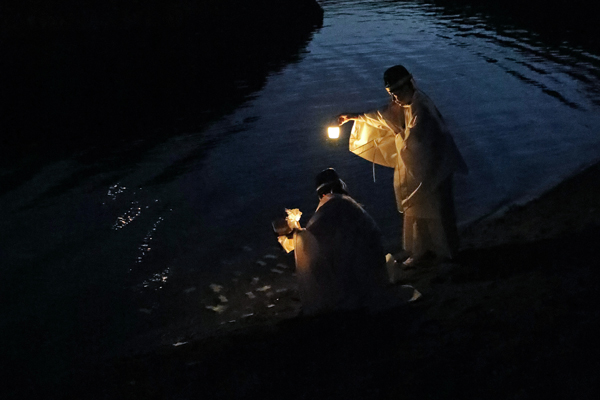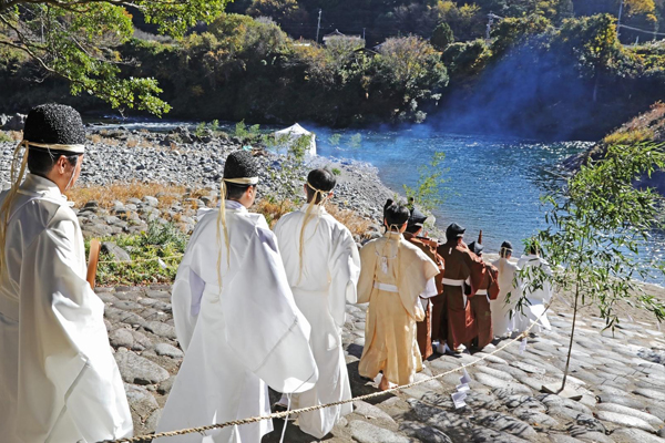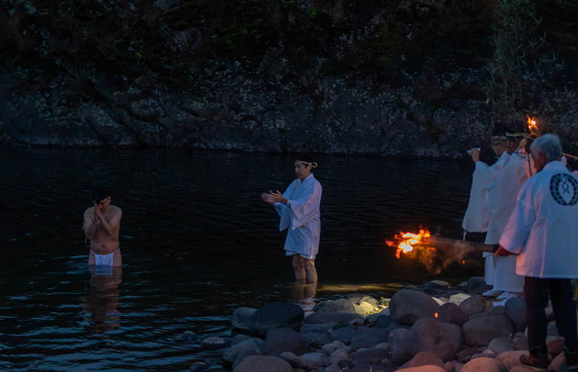 垢離取祭 2024年12月1日 清浄極まるに到りて霊峰白山より 白山大神を洲原神社にお迎えする神事 「垢離取祭」(こりとりさい)は斎主が門前の長良川で水垢離を繰り返し、汚れを祓い清めます。 夕刻、清浄極まるに到りて霊峰白山より白山大神を洲原神社にお迎えする神事です。 毎年、旧暦11月朔日に近い日曜日に行われます。 垢離取(こりとり) 奉仕する斎主が2時間おきに1日に7回の水垢離を取り、潔斎して身体の汚れを落とします。 垢離取の作法は、腰まで水に入り、まず、水深く身體(しんたい)全部を浸し、次に水中程まで身體を浸し、最後に腰を折り、浅く顔が浸かる程度。これは筒之男命(つつのおのみこと)・綿津見神(わたつみのかみ)それぞれ三柱神(みはしらのかみ)の祓い清めを受ける作法といわれます。 特別御祈祷 人形に祓い清めを託すとともに、斎主が参拝者になり代わり、皆様の罪汚れを祓い、洲原大神へ御祈願申し上げる垢離取祭だけの特別な御祈祷です。 祈願符・特別な祓腕輪(はらいうでわ)が授与されます。 斎行時刻:計6回 6時40分・8時半・10時半・12時半・14時半・16時半 ※当日お越しになれない方でも、お申し込みいただけます。 受付:洲原神社社務所 初穂料:5,000円〜 神迎神事(かみむかえしんじ) 両手に榊の枝を棒持した斎主が四方拝し、神歌を奏し白山大神(しらやまのおおかみ)を迎える神事。 榊の枝を通じて依代に迎えられた白山大神は、最後に御正殿に奉斎されます。 神が降りられた榊の枝は「重榊(おもさかき)」と呼ばれ、御懸りものとして参拝者に授与されます。 その葉は善事を招き。災事を防ぐと信じられており、「榊の神事」ともいわれます。 Post Share RSS